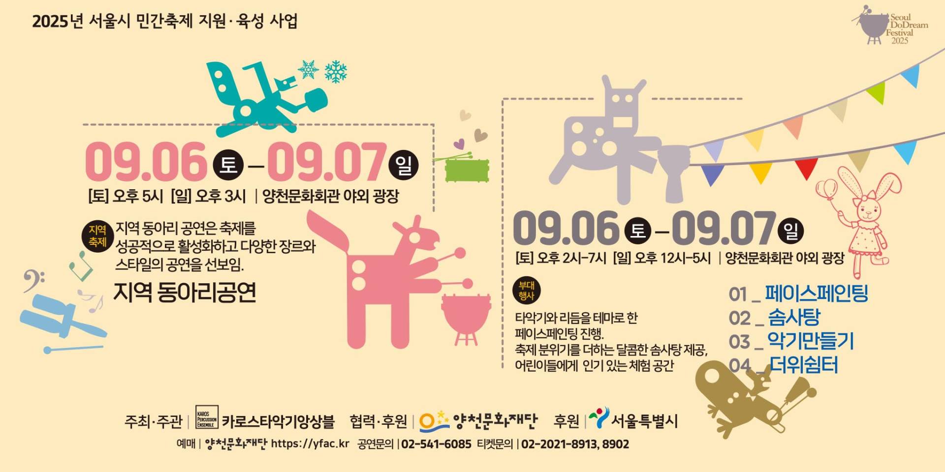 – 특정 계층이 아닌 누구나 즐길 수 있는 열린 축제로 확대하여, 사회적·문화적 가치를 실현 2025년 9월6일 ~ 7일 양천문화회관 및 야외 광장